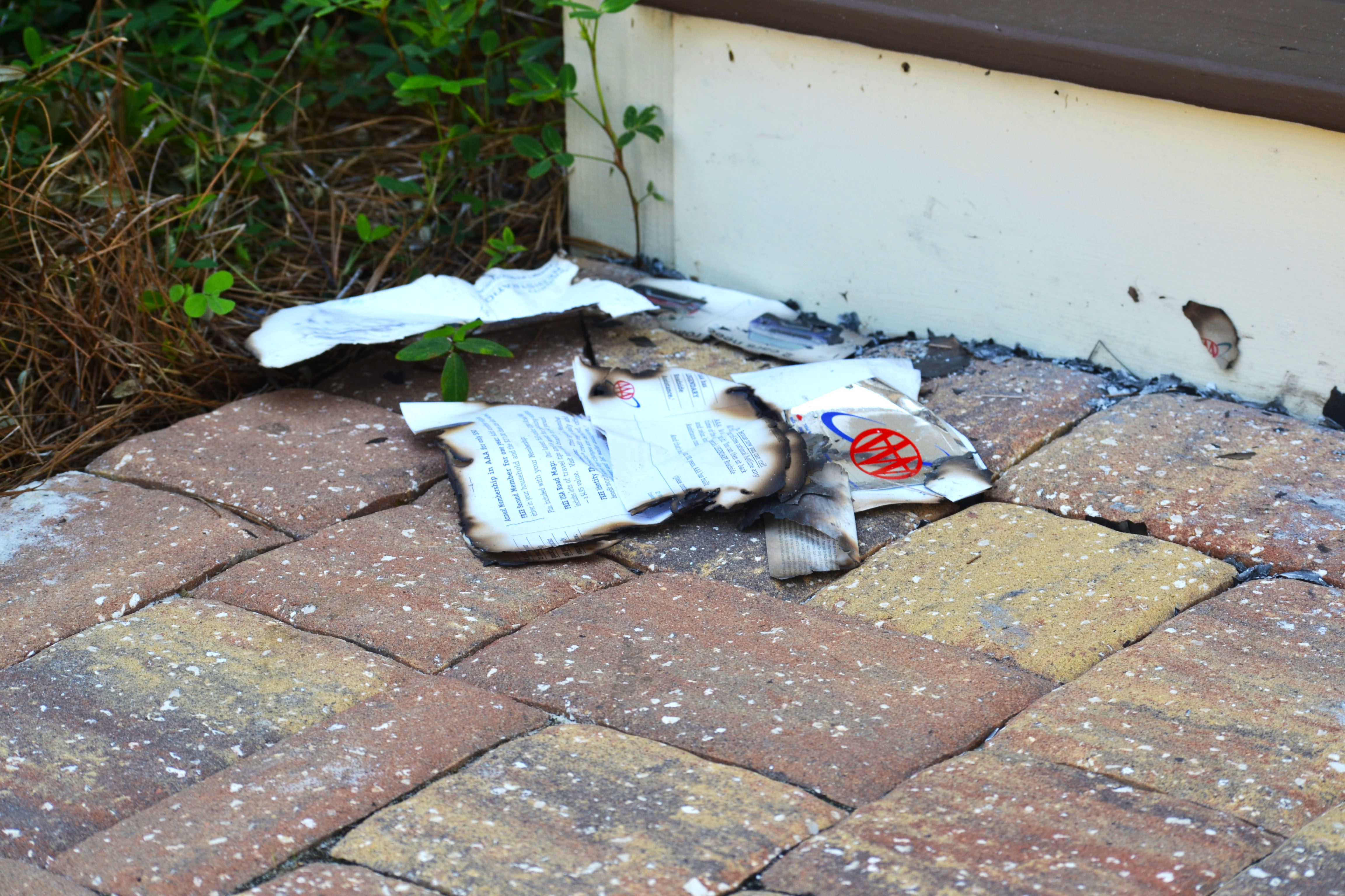 While canvassing the area deputies located burned AAA papers in front of 27 Cinnamon Fern Lane near one of the victim’s property. Also located at the rear of the residence was a club head cover identified by a victim as possibly belonging to him.