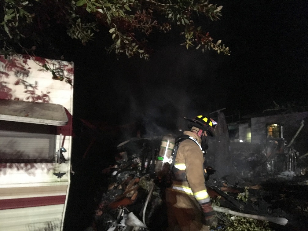 Freeport, Fla— An overnight residential fire destroys an unoccupied mobile home and threatens a nearby camper with residents inside.
