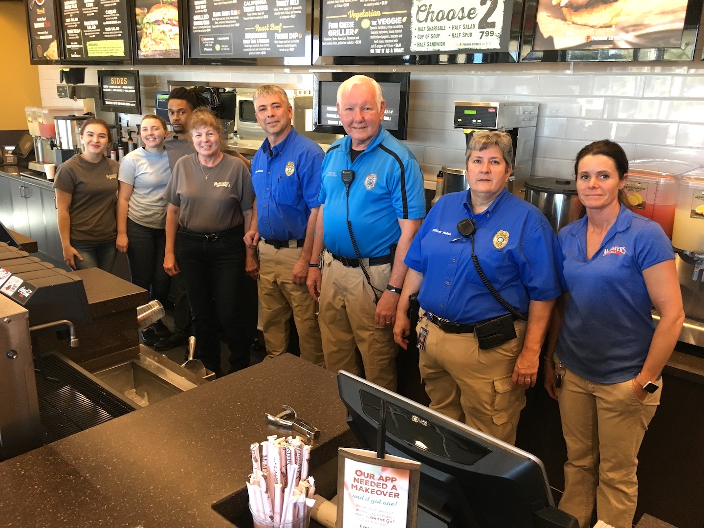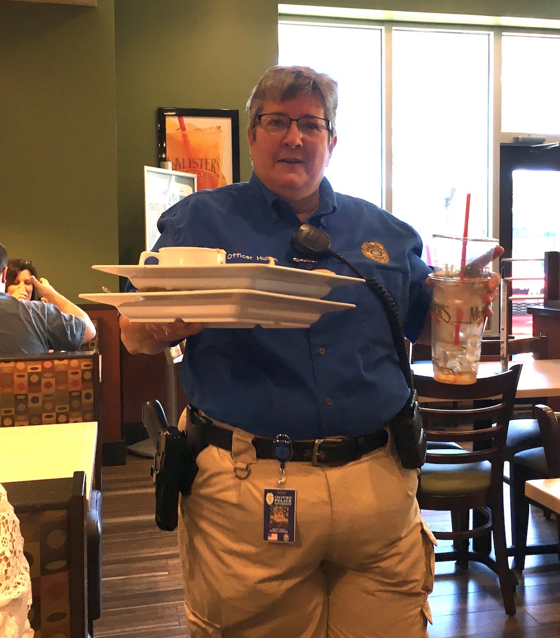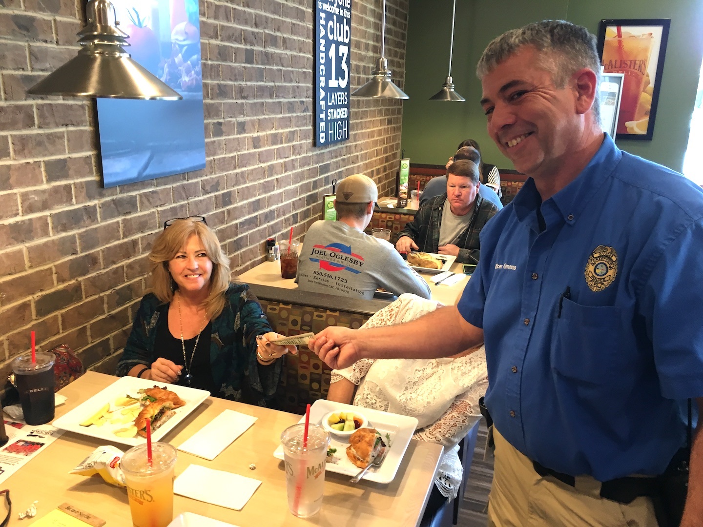 Customers kept Officers Wanda Hulion, Sam Kimmons and Terry Mace busy cleaning tables, fetching drink refills and napkins, and occasionally assisting McAlister’s professional waitstaff in carrying large orders to tables.