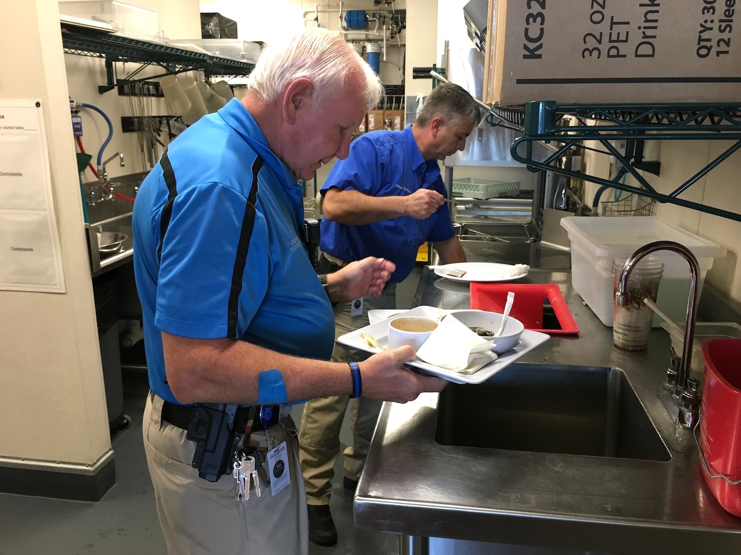 “It gets hot back there!” Ofc. Kimmons said as he and Mace emerged from the kitchen after cleaning a batch of dishes and trays they’d whisked off of tables.