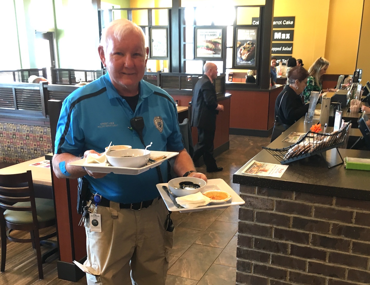 For Officers Kimmons and Mace, the busy environment of a workday lunch crowd at the popular new restaurant provided a taste of what waitstaff at eateries throughout town have to content with.