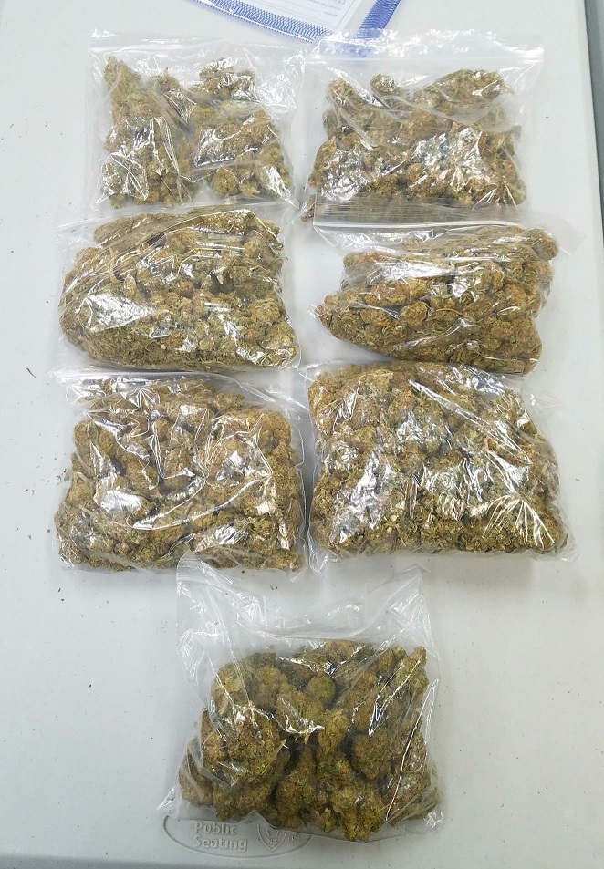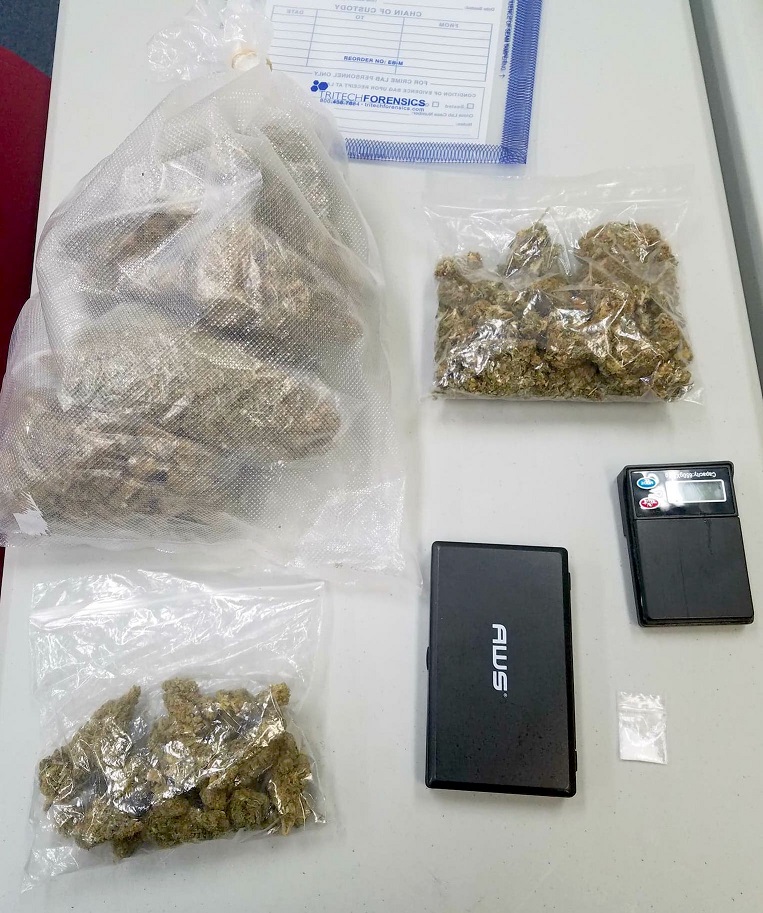 A total of more than 13 ounces of marijuana was discovered. The suspected cocaine weighed less than a gram.